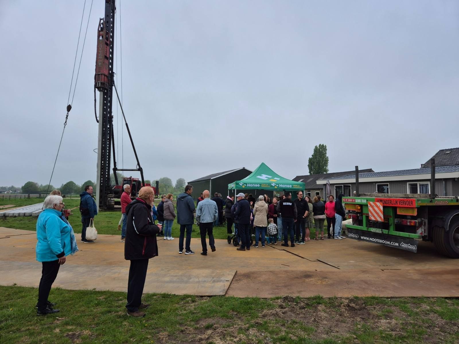 Vandaag was het dan eindelijk zover en zijn de laatste heipalen de grond in gegaan! Hier hebben we natuurlijk een bijzonder momentje van gemaakt! Met een bakkie en een gebakkie. Zo mochten Anseline en Conny symbolische de paal slaan! Weer een stapje verder in de bouw! Iedereen bedankt voor jullie aanwezigheid!